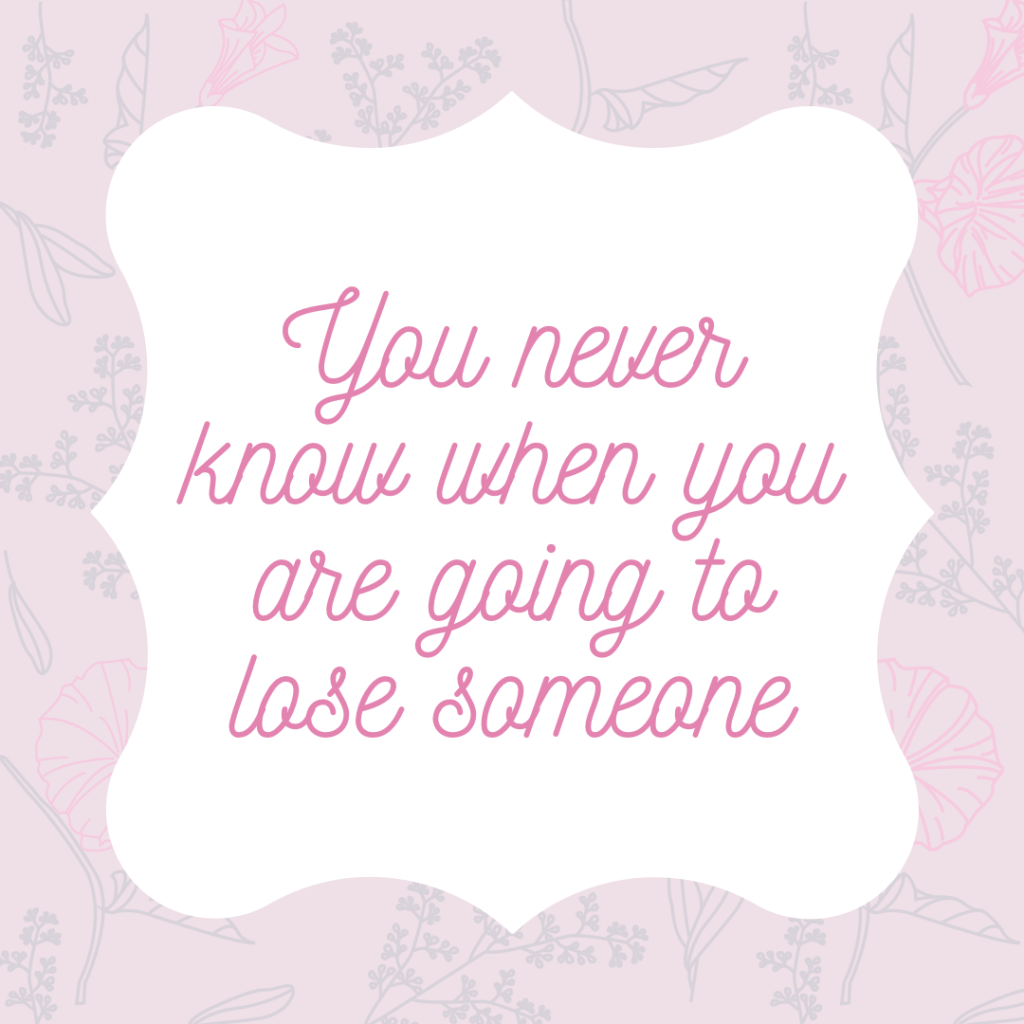 I couldn’t believe she was just gone like that. It made me realize that you should always solve an argument because you never know when you are going to lose that person.